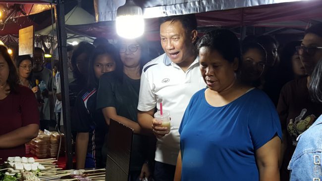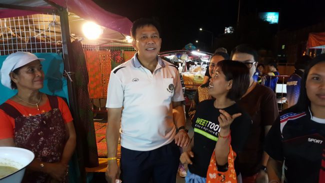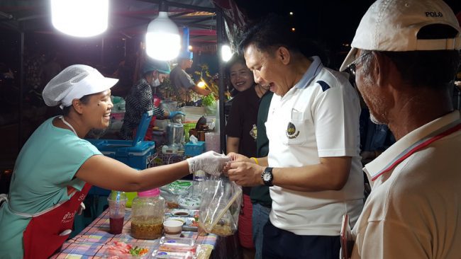 เมื่อเวลา 18.30 น.วันที่ 16 พ.ย.2562 ที่บริเวณถนนเลียบชายทะเลอ่าวประจวบ หน้าศูนย์บริการนักท่องเที่ยว กองส่งเสริมท่องเที่ยวเทศบาลเมืองประจวบฯ อ.เมือง จ.ประจวบคีรีขันธ์ นายภิรมย์ นิลทยา รองผู้ว่าราชการจังหวัดประจวบคีรีขันธ์ พร้อม พัฒนาการจังหวัดประจวบฯ พัฒนาการอำเภอเมืองฯ ได้เดินทางลงพื้นที่ตรวจเยี่ยมตลาดประชารัฐไทยช่วยไทยคนไทยยิ้มได้ เพื่อให้กำลังใจพ่อค้าแม่ค้าที่ได้รับความเดือดร้อน หลังจากที่ถูกสั่งให้หยุดจำหน่ายสินค้ามานานกว่า 3 สัปดาห์ จากปัญหาการขออนุญาตเปิดตลาดไม่ถูกต้องครบถ้วน และเพิ่งดำเนินการเปิดมาได้ตั้งแต่เมื่อวันศุกร์ที่ 15 พ.ย.ที่ผ่านมา โดยในวันนี้พ่อค้า-แม่ค้า ซึ่งค้าขายอยู่ภายในเต็นท์สีชมพูกว่า 71 บู๊ท ต่างให้การต้อนรับรองผู้ว่าราชการจังหวัด และคณะ โดยมีการเชิญชวนและแนะนำให้คณะร่วมทดลองชิมอาหาร ทั้งประเภทคาว-หวาน ที่นำมาจำหน่ายในแต่ละร้าน ซึ่งพ่อค้า-แม่ค้าในแต่ละร้านล้วนมีความรู้สึกดีใจ มีสีหน้าที่ยิ้มแย้มแจ่มใสที่ได้กลับมาจำหน่ายสินค้าที่ตลาดแห่งนี้อีกครั้ง หลังจากที่ต้องหยุดจำหน่ายสินค้ามานาน 3 สัปดาห์ ทำให้ขาดรายได้เลี้ยงดูครอบครัว และเงินส่งลูกไปเรียนหนังสือ โดยบรรยากาศเป็นไปอย่างกันเอง