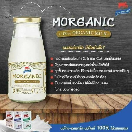 ส่วนนมมอร์แกนิค เป็นผลิตภัณฑ์ที่มีไขมันไม่อิ่มตัว มีความเป็นธรรมชาติสูง ไม่มีสารเคมี และสารอาหารก็มีความแตกต่างกับนมทั่วไป จุดเด่นในโภชนาการคือ มีกรดไขมันชนิดโอเมก้า-3, โอเมก้า- 6 และมีค่า CLA สูงกว่าน้ำนมปกติทั่วไป โดยคุณประโยชน์ที่สำคัญคือ การช่วยลดความเสี่ยงต่อโรคหลอดเลือดหัวใจอุดตัน และ ต่อต้านการเกิดมะเร็งด้วย นับได้ว่าเป็นน้ำนมที่มีคุณภาพและเป็นประโยชน์ต่อผู้บริโภค ซึ่ง2ผลิตภัณฑ์ปัจจุบันผู้บริโภคให้การตอบรับที่ดี โดยนมพาสเจอร์ไรส์ “มอร์แกนิค” และ “โยเกิร์ตออร์แกนิค” ในปี 2562 มียอดขายกว่า 7.5 ล้านบาท แสดงให้เห็นว่าความนิยมของผลิตภัณฑ์ออร์แกนิคของผู้บริโภคยุคใหม่ใส่ใจเรื่องความปลอดภัยต่อสุขภาพมากขึ้นเรื่อยๆและผลิตนมมอร์แกนิค ของไทย-เดนมาร์คนับได้ว่าตอบโจทย์กลุ่มเป้าหมายได้เป็นอย่างดี