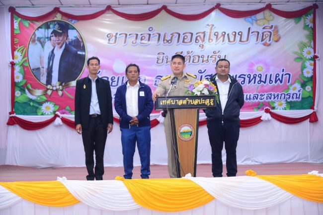 ขณะเดียวกันยังเดินทางต่อไปยัง ที่ว่าการอำเภอสุไหงปาดี เพื่อพบปะประชาชนและรับฟังปัญหาเรื่องที่ดินและพื้นที่ที่มีปัญหาจากเกษตรกร นอกจากนี้ได้เดินทางไปเยี่ยมชมการแปรรูปข้าว และพบปะเกษตรกรกลุ่มปลูกข้าวหอมกระดังงา ณ บ้านตอหลัง อ.ตากใบ จ.นราธิวาส
