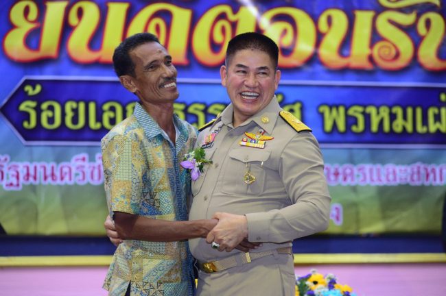 ทั้งนี้ ร้อยเอกธรรมนัส กล่าวว่า จากการรับฟังปัญหาจากเกษตรกร ในพื้นที่ จ. นราธิวาส เกษตรกรส่วนใหญ่ ยังมีปัญหาการขาดแคลนที่ดินทำกินจำนวนมาก เช่นเดียวกับพื้นที่อื่น ๆทั่วประเทศ โดย ขณะนี้ ตนได้สั่งการให้ทางสำนักงานปฎิรูปที่ดินเพื่อเกษตรกรหรือ (สปก.) เร่งรัดในการจัดรูปที่ดินให้กับเกษตรกร ให้เร็วที่สุด โดยยอมรับว่าการจัดที่ดินทำกินให้เกษตรกรขณะนี้ค่อนข้างมีปัญหา เนื่องจากมีพื้นที่ทับซ้อนกันจำนวนมาก ซึ่งขณะนี้มีทั้งพื้นที่อุทยาน พื้นที่กรมป่าไม้ ซึ่งทับซ้อนกันกับพื้นที่ สปก. จำนวนมาก จนเป็นปัญหาต่อการจัดสรรพื้นที่ทำกินให้กับเกษตรกร