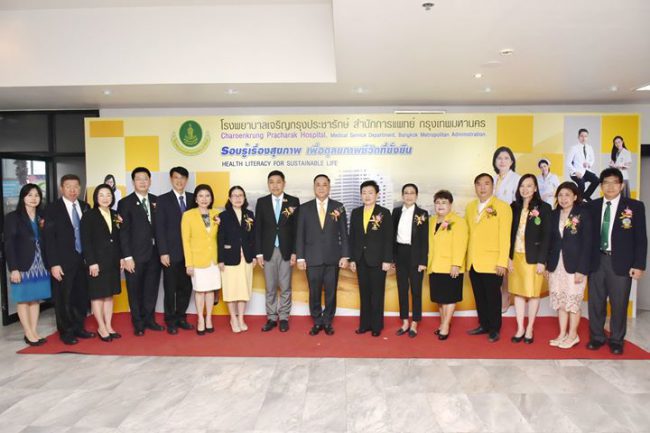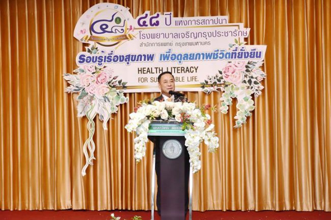 รพ.เจริญกรุงประชารักษ์จัดงานครบรอบ 48 ปีแห่งการสถาปนา ภายใต้แนวคิด “Health Literacy For Sustainable Life : รอบรู้เรื่องสุขภาพ เพื่อดุลยภาพชีวิตที่ยั่งยืน” โดยได้รับเกียรติจาก พล.ต.ท.โสภณ พิสุทธิวงษ์ รองผู้ว่ากรุงเทพมหานคร เป็นประธานเปิดงาน ในวันที่ 22 พฤศจิกายน 2562 เวลา 09.00 – 10.30 น. ณ ห้องประชุมอุดมสังวรญาณ ชั้น 23 อาคาร 72 พรรษา มหาราชินี รพ.เจริญกรุงประชารักษ์ โดยมี พญ.เลิศลักษณ์ ลีลาเรืองแสง ผู้อำนวยการโรงพยาบาลเจริญกรุงประชารักษ์ นำคณะผู้บริหารกรุงเทพมหานคร เยี่ยมชมอาคารโครงสร้างกายภาพที่เพิ่งแล้วเสร็จ ได้แก่ อาคารเวชศาสตร์ฟื้นฟู ศูนย์ผู้สูงอายุ และ อาคารสนับสนุนการรักษา