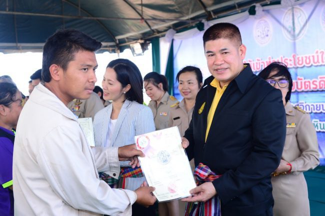 วันที่ 25 พ.ย.62 ร้อยเอก ธรรมนัส พรหมเผ่า รัฐมนตรีช่วยว่าการกระทรวงเกษตรและสหกรณ์ เปิดเผยภายหลังเป็นประธานใน พิธีมอบหนังสืออนุญาตให้เข้าทำประโยชน์ในเขตปฏิรูปที่ดิน (ส.ป.ก. 4-01) ให้กับเกษตรกรในในเขตปฏิรูปที่ดินจังหวัดสระแก้ว จำนวน150 ราย พร้อมมอบบัตรดินดี ให้เกษตรกร จำนวน20 ราย ณ แปลง คทช. No.421 หมู่ที่ 8 ตำบลคลองหินปูน อำเภอวังน้ำเย็น จังหวัดสระแก้ว ว่า การลงพื้นที่ตรวจราชการในวันนี้ เป็นการติดตามความก้าวหน้าการดำเนินงานตามนโยบายกระทรวงเกษตรและสหกรณ์ ด้านการจัดการที่ดินและดำเนินการจัดที่ดินทำกินให้ชุมชนตามนโยบายรัฐบาล (คทช.) โดยสำนักงานการปฏิรูปที่ดินจังหวัดสระแก้ว (ส.ป.ก.สระแก้ว) ซึ่งจัดตั้งขึ้นในปี พ.ศ. 2536 ตาม พรบ.จัดตั้งจังหวัดสระแก้ว แยกมาจากจังหวัดปราจีนบุรี ได้ดำเนินการประกาศเป็นเขตปฏิรูปที่ดินตั้งแต่ปี พ.ศ.2521 โดยมีพื้นที่ดำเนินการทั้งสิ้นประมาณ 2.04 ล้านไร่ ประกอบด้วย 9 อำเภอ ได้แก่ อำเภอเมืองสระแก้ว เขาฉกรรจ์ คลองหาด โคกสูง ตาพระยา วังน้ำเย็น วังสมบูรณ์ วัฒนานคร และอรัญประเทศ โดยได้ดำเนินการออกหนังสืออนุญาตให้เข้าทำประโยชน์ในที่ดินแก่เกษตรกรแล้ว จำนวน 0.20 ล้านราย 0.13 ล้านแปลง เนื้อที่รวม 1.30 ล้านไร่ มีพื้นที่คงเหลือประมาณ 0.74 ล้านไร่ อยู่ระหว่างดำเนินการในลำดับต่อไป