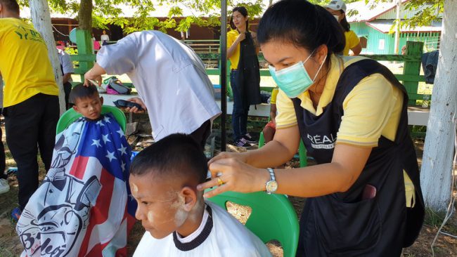 นอกจากนี้ยังมีบริการตัดผมทรงนักเรียนให้กับนักเรียนชาย-หญิง ซึ่งได้รับการสนับสนุนช่างฝีมืออาชีพจากสำนักงานพัฒนาฝีมือแรงงานประจวบคีรีขันธ์ และชมรมจิตอาสาบาร์เบอร์จังหวัดประจวบคีรีขันธ์ พร้อมกิจกรรมตรวจสุขภาพให้กับนักเรียนและผู้ปกครอง โดยเจ้าหน้าที่เสนารักษ์ หน่วยเฉพาะกิจจงอางศึก และแจกขนมเด็กนักเรียน ณ บริเวณสนามฟุตบอลโรงเรียนบ้านสะพาน 3 อำเภอตะนาวศรี จังหวัดมะริด สาธารณรัฐแห่งสหภาพเมียนมาร์ ทั้งนี้เพื่อเป็นการสร้างความเข้าใจระหว่างหน่วยงานราชการด้านความมั่นคง และประชาชนในพื้นที่ของทั้งสองประเทศ