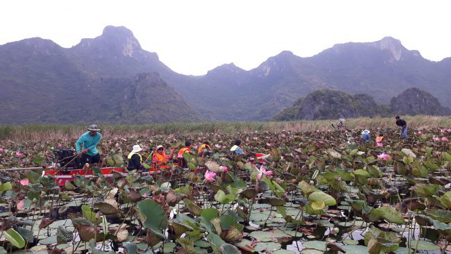 อำเภอสามร้อยยอด เปิดแหล่งท่องเที่ยวทางน้ำแห่งใหม่ นักท่องเที่ยวแห่ชมทุ่งบัวบาน ตำนานเรือสำเภา