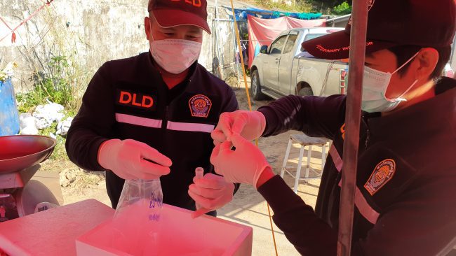 ทั้งนี้ เพื่อนำเอาชิ้นส่วนตัวอย่างที่เก็บได้ทั้งหมดทุกร้านส่งเข้าห้องแลปเพื่อตรวจวิเคราะห์หาโรคที่อาจติดมากับเนื้อหมูว่ามีเชื้อโรคอหิวาต์แอฟริกาที่ระบาดในหมูฝั่งประเทศเมียนมาร์เล็ดลอดข้ามมาในฝั่งไทยบ้างหรือไม่ เนื่องจากเกรงว่าอาจจะมีการลักลอบแอบนำเนื้อหมูเข้ามาจำหน่ายในฝั่งไทย โดยไม่ได้ผ่านการตรวจหาเชื้อโรคและไม่ได้รับอนุญาต