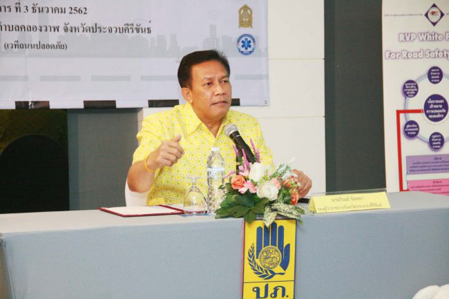 ด้าน นายอุทัย ขันทอง รักษาการหัวหน้าสำนักงานป้องกันและบรรเทาสาธารณภัย จ.ประจวบฯ กล่าวว่า ได้ร่วมกับบริษัทกลางฯ ซึ่งเป็นองค์กรที่จัดตั้งขึ้นตามกฎหมายแห่ง พ.ร.บ.คุ้มครองผู้ประสบภัยจากรถ ทำหน้าที่จ่ายค่าสินไหมทดแทนผู้ที่ประสบภัยจากรถ กรณีบาดเจ็บหรือเสียชีวิตจากอุบัติเหตุทางถนน และหน่วยงานภาคีเครือข่ายในพื้นที่จังหวัด ประกอบด้วย สำนักงานป้องกันและบรรเทาสาธารณภัยจังหวัด กองบังคับการตำรวจภูธรจังหวัด สำนักงานสาธารณสุขจังหวัด สำนักงานขนส่งจังหวัด แขวงทางหลวงจังหวัด แขวงทางหลวงชนบทจังหวัด ประชาสัมพันธ์จังหวัด สถาบันการแพทย์ฉุกเฉินในพื้นที่จังหวัด สำนักงานส่งเสริมการท้องถิ่นจังหวัด บริษัทกลางคุ้มครองผู้ประสบภัยจากรถ จำกัดในพื้นที่จังหวัด สำนักงานสวัสดิการและคุ้มครองแรงงานจังหวัด สำนักงานเขตพื้นที่การศึกษาจังหวัด สำนักงานคณะกรรมการกำกับและส่งเสริมการประกอบธุรกิจประกันภัยจังหวัด มูลนิธิกู้ชีพ/กู้ภัยในพื้นที่จังหวัด และศูนย์ปฏิบัติการความปลอดภัยทางถนนอำเภอ และท้องถิ่น เพื่อนำข้อมูลสถิติการเกิดอุบัติเหตุทางถนน และปัจจัยเสี่ยงในพื้นที่ มาวิเคราะห์และจัดทำแผนปฏิบัติการ ด้านความปลอดภัยทางถนนจังหวัดด้วยระบบ เพื่อลดอุบัติเหตุทางถนนอย่างยั่งยืน รวมถึงการดำเนินการตามแผนปฏิบัติการขับเคลื่อนการดำเนินการป้องกันและแก้ไขปัญหาอุบัติเหตุทางถนนในระดับพื้นที่ ให้เกิดผลเป็นรูปธรรม มีเป้าหมายที่ชัดเจน และมีทิศทางการดำเนินงานอย่างเป็นระบบ สอดคล้องกับข้อเท็จจริงในพื้นที่ และยังสอดคล้องกับแผนแม่บทความปลอดภัยทางถนนในปี 2561 – 2564 ถือเป็นโอกาสอันดีและร่วมกันนำเสนอผลการปฏิบัติการและระดมความคิดเห็น วิเคราะห์สถิติการเกิดอุบัติเหตุทางถนน และปัจจัยเสี่ยงต่างๆในพื้นที่ กำหนดตัวชี้วัด มาตรการและแผนงาน ในการดำเนินการป้องกันและลดอุบัติเหตุทางถนนในพื้นที่ รวมถึงสามารถขับเคลื่อนการรายงานข้อมูลสถิติการเกิดอุบัติเหตุทางถนนในพื้นที่อย่างเป็นระบบ ถูกต้อง สมบูรณ์ และที่สำคัญจะนำไปสู่การมีแผนปฏิบัติการด้านความปลอดภัยทางถนนจังหวัด เพื่อบูรณาการดำเนินงานกับทุกภาคส่วนในพื้นที่ ขับเคลื่อนการดำเนินงานป้องกันและแก้ไขปัญหาอุบัติเหตุทางถนนต่อไป โครงการการบริหารจัดการแผนงานด้วยระบบเพื่อลดอุบัติเหตุทางถนนอย่างยั่งยืนนี้ จะดำเนินการอย่างต่อเนื่องในการติดตามประเมินผลปรับปรุงแผนปฏิบัติการเป็นการดำเนินการตามกรอบ pdca โดยความร่วมมือของภาคีเครือข่ายที่ช่วยกันหาแนวทาง ในการป้องกันและล