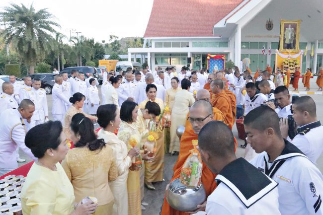กองทัพเรือ ร่วมทำบุญตักบาตรพระสงฆ์ 89 รูป ในวันชาติและวันพ่อแห่งชาติ