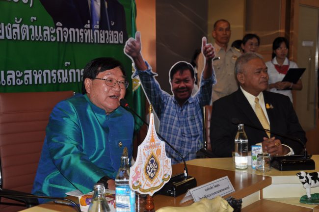นายประภัตร โพธสุธน รมช.กระทรวงเกษตรและสหกรณ์ เปิดเผยว่า จากที่กรมปศุสัตว์ และ ธ.ก.ส. มีเจตนารมณ์ในการส่งเสริมการเลี้ยงสัตว์ ได้แก่ โคเนื้อ กระบือ แพะเนื้อ และไก่พื้นเมือง รวมถึง กิจการที่เกี่ยวเนื่อง โดยมีวัตถุประสงค์เพื่อเพิ่มขีดความสามารถภาคปศุสัตว์ไทย ฟื้นฟูอาชีพแก่เกษตรกร บรรเทาความเดือดร้อนเสียหายจากภัยพิบัติ ภัยธรรมชาติ และผลกระทบจากราคาพืชผลการเกษตรตกต่ำ พร้อมทั้งสนับสนุนการจัดการตลาดผลิตผลการเกษตรที่เป็นวัตถุดิบอาหารสัตว์ และเพื่อเป็นการสร้างอาชีพทางเลือกใหม่ ด้วยการปรับเปลี่ยนพื้นที่ไม่เหมาะสมมาเลี้ยงสัตว์ จำหน่ายทั้งภายในประเทศและต่างประเทศ