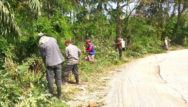 โดยได้ร่วมกันใช้ มีด เครื่องตัดหญ้า พัฒนา 2 ข้างทางเข้าหมู่บ้าน ระยะทาง กว่า 3.50 ก.ม. นอกจากนี้ยังได้ร่วมกันเก็บขยะ และคัดแยกขยะจากต้นทาง เนื่องจากถนนเส้นดังกล่าว เป็นเส้นทางที่ประชาชนใช้เป็นเส้นทางเข้าสู่แหล่งท่องเที่ยงชื่อดัง โบสถ์เหรียญบาท วัดบ้านทุ่งเคล็ด อีกด้วย