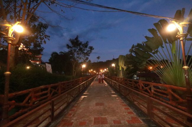 จากนั้นแล่นเรือต่อไปชมโบสถ์กลางน้ำที่ลอยขึ้นให้เห็นถึงความเก่าแก่ตามยุคตามสมัย จากนั้นคณะของเราได้นั่งเรือต่อไปยังการเยี่ยมชมพระอุโบสถวัดศรีสุวรรณ สักการะพระพุทธชินราช องค์ที่ 17 ประดิษฐานอยู่ภายใน โบสถ์หลังนี้เป็นโบสถ์หลังเก่าก่อนวีดนี้จะถูกย้ายไปอยู่บนบก หลังจากที่ได้สักการะสิ่งศักดิ์ภายในพระอุโบสถ์แล้ว คณะของเราก็ลงเรือเพื่อกลับไปชมบรรยากาศย่านสะพานมอญ ระหว่างที่แล่นเรือกลับ เป็นเวลาที่พระอาทิตย์กำลังจะลับขอบฟ้า ซึ่งเป็นเวลาที่อากาศเปิด พวกเราได้เห็นแสงทองสาลงมากระทบกับสายน้ำระยิบระยับ เป็นที่ประทับใจของทุกคนอย่างมาก ไม่นานนักเราก็มาลงเรือยังเชิงสะพานมอญ แสงสีกำลังสลัว แวะจับจ่ายใช้สอยในตลาดมอญ พอถึงตัวสะพานมอญ ต่างก็คว้าทั้งกล้องทั้งมือถือถ่ายภาพเป็นที่ระลึกกันอย่างเต็มอิ่ม จากนั้นก็ยกขบวนกลับเข้าที่พัก รับประทานอาหารเย็น ก่อนที่จะหลับพักผ่อนสะสมพลังงานเอาไว้ใช้ในวันรุ่งขึ้น