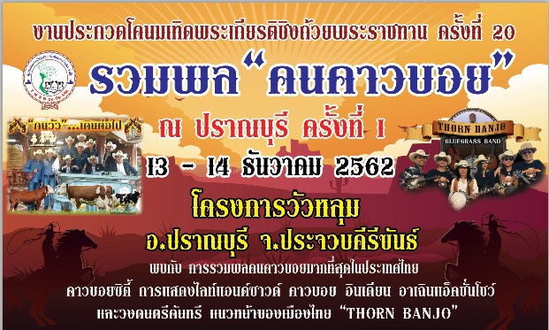 วันที่ 10 ธันวาคม 2562 ผู้สื่อข่าวรายงานว่า ที่โครงการเลี้ยงวัวทดแทนในระบบชีวภาพ(วัวหลุม) ต.หนองตาแต้ม อ.ปราณบุรี จ.ประจวบคีรีขันธ์ ได้มีการจัดแถลงข่าว การจัดงานประกวดโคนมเทิดพระเกียรติ ชิงถ้วยพระราชทาน ครั้งที่ 20 และงานรวมพลคนคาวบอยมากที่สุดในประเทศไทย ครั้งที่ 1 ณ ปราณบุรี ระหว่างวันที่ 13-14 ธันวาคม 2562 มีคณะกรรมการจัดงานและตัวแทนหน่วยงานราชการเข้าร่วม นำโดย นายสังวาลย์ โพธิ์มี ประธานชุมนุมสหกรณ์โคนมภาคใต้และตะวันตก จำกัด พ.ท.ดร.สมบูรณ์ ชัยหมก ประธานชมรมคาวบอยภาคใต้และตะวันตก นายเชาวลิต ขาวปลอด หัวหน้าสำนักงาน อ.ส.ค.ภาคใต้ นายวงศ์ธารินทร์ พรหมรักษ์ รักษาการสหกรณ์จังหวัดประจวบคีรีขันธ์ นายสากล ก้อนเมฆ ประธานโคนมไทย-เดนมาร์กประจวบคีรีขันธ์ จำกัด นายอนันต์ ศิริโท ประธานโคนมไทย-เดนมาร์กอ่าวน้อย จำกัด นายวิรัตน์ ซบเอี่ยม ประธานโคนมชะอำ-ห้วยทราย จำกัด อ.สุกัญญา มีนา ที่ปรึกษาอุตสาหกรรมจังหวัดเพชรบุรี นายดิเรก จอมทอง คณะทำงานดร.วิชิต ปลั่งศรีสกุล มีนายนนทะชัย โนนพุดซา ผจก.ชุมนุมสหกรณ์โคนมภาคใต้และตะวันตก จำกัด เป็นผู้ดำเนินการ