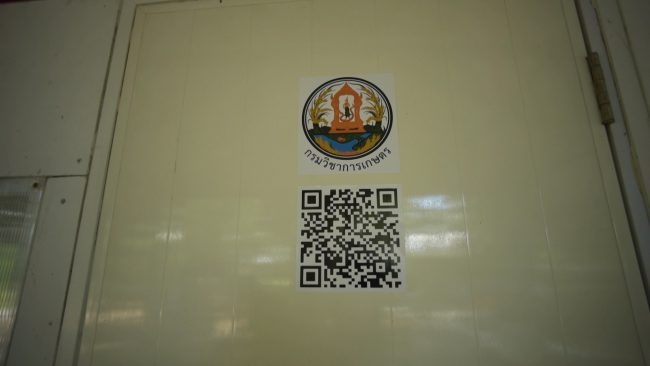 “โรงผลิตขยายชีวภัณฑ์ไส้เดือนฝอยกำจัดแมลงระดับชุมชน” ทุกโรงที่กรมวิชาการเกษตรผลิตขึ้นมา จะมี QR Code ติดอยู่ที่บริเวณหน้าประตูทางเข้า เกษตรกรหรือผู้สนใจเกี่ยวกับเทคโนโลยีการผลิตและใช้ไส้เดือนฝอยกำจัดแมลง สามารถใช้โทรศัพท์มือถือสแกน QR Code เพื่อเข้าถึงข้อมูลได้ง่ายรวดเร็ว ทันสมัย โดยไม่ต้องพึ่งพาเอกสารสิ่งพิมพ์ที่เป็นเล่มอีกต่อไป” อธิบดีกรมวิชาการเกษตร กล่าว