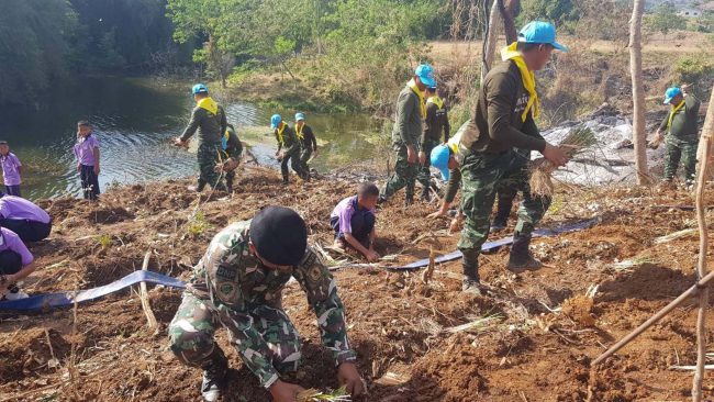 ทหารจงอางศึก นำชาวบ้านด่านสิงขร ร่วมปลูกหญ้าแฝก-ต้นปอเทือง เฉลิมพระเกียรติ ร.9 เนื่องในวันดินโลก