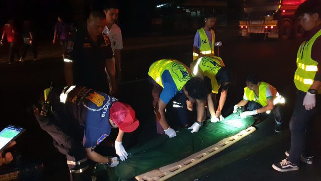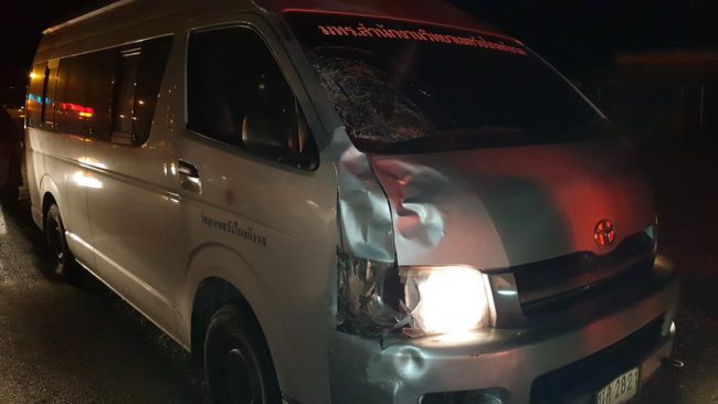 หนุ่มนิรนามวิ่งตัดหน้ารถตู้คณะครูถูกชนกระเด็นไกล 20 เมตรดับคาที่
