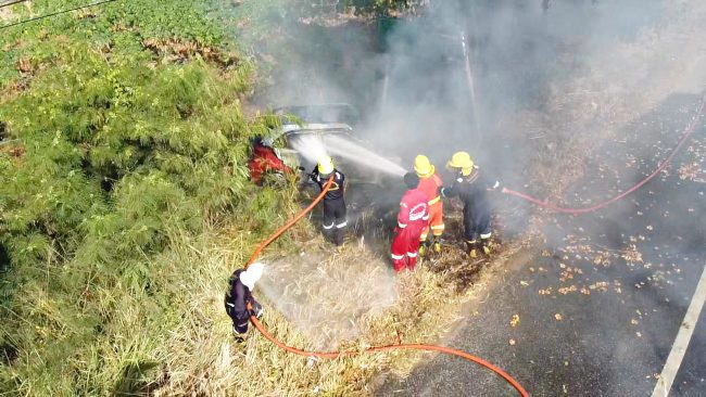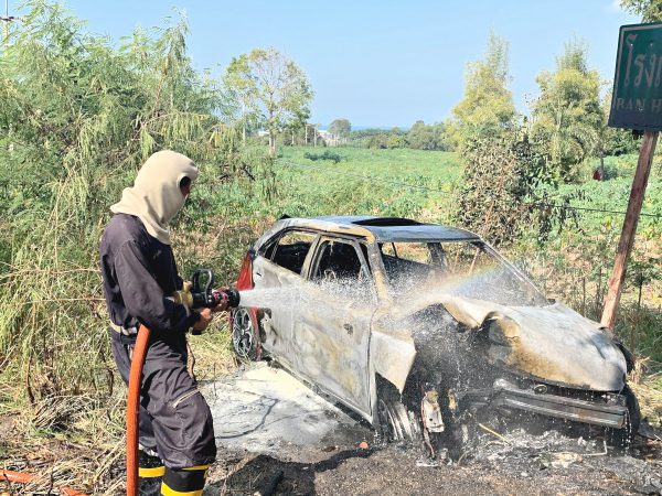 หวิดไฟคลอกสยองช่วยได้ทัน หนุ่มวูบหลับในเก๋งพุ่งชนต้นไม้ไฟลุกท่วม