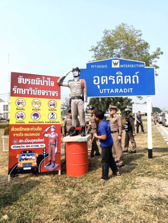 เมื่อวันพุธที่ 26 ธ.ค.62 เวลา 13.00 น. ภายใต้การอำนวยการของ พ.ต.อ.นนทวร สีอินทร์ ผกก.สภ.เมืองอุตรดิตถ์,พ.ต.ท.อนุสรณ์ ดังก้อง รอง ผกก.ป.สภ.เมืองอุตรดิตถ์ พร้อมด้วยข้าราชการตำรวจในสังกัด สภ.เมืองอุตรดิตถ์ ร่วมทำกิจกรรมจิตอาสา”ร่วมมือ ร่วมใจ ลดอุบัติภัยทางถนน” เนื่องในเทศกาลส่งท้ายปีเก่าต้อนรับปีใหม่ประจำปี 2563 โดยได้มีการนำหุ่นรูปหมวดเฉย ติดตั้งไฟกระพริบ เพื่อเป็นสัญญาณแจ้งเตือนในการลดอุบัติเหตุทางถนนในช่วงเทศกาลปีใหม่ 2563 ณ บริเวณแยกอุตรดิตถ์และก่อนถึงทางลอดอุโมงค์วังสีสูบ