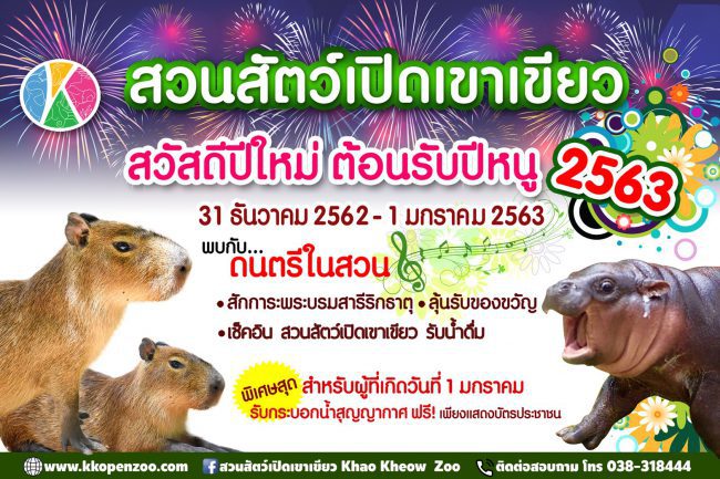 นายอรรถพร ศรีเหรัญ ผู้อำนวยการสวนสัตว์เปิดเขาเขียว เผยว่าสวนสัตว์เปิดเขาเขียว ฉลองเทศกาลวันขึ้นปีใหม่ ปี พ.ศ.2563 ต้อนรับปีหนู ขอเชิญนักท่องเที่ยวชมความน่ารักของครอบครัว หนูยักษ์คาปิบาร่า กลุ่มสัตว์ฟันแทะขนาดใหญ่ที่สุดในโลก