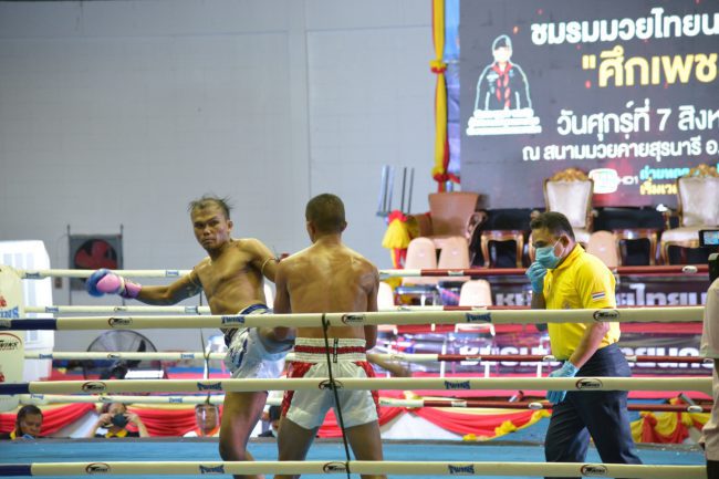 ที่สนามมวยค่ายสุรนารี อ.เมือง นครราชสีมา นายสุวัจน์ ลิปตพัลลภ อดีตรองนายกรัฐมนตรี เป็นประธานเปิดการแข่งขันมวยไทย “ ศึกเพชรนิล ” สมทบทุนสวัสดิการชมรมมวยไทยนครราชสีมา โดยมีพันเอกบุญส่ง พรมนิล ผู้บังคับการกรมทหารพรานที่ 26 ในฐานะประธานชมรมมวยไทยนครราชสีมา พร้อมนายแหลมทอง วัฒนา นายกเทศมนตรีตำบล (ทต.)โคกสูง อ.เมือง รองประธานชมรม ฯ นายประเสริฐ เชยพุดซา กำนันตำบลพุดซา อ.เมือง รองประธานชมรม ฯ และผู้เกี่ยวข้องทั้งภาครัฐและเอกชนร่วมแสดงความยินดีกับความสำเร็จที่สามารถจัดการแข่งขันชกมวยไทยเป็นครั้งแรกของภาคตะวันออกเฉียงเหนือ หลังเกิดสถานการณ์การแพร่ระบาดของโรคติดต่อเชื้อไวรัสโควิด-19 ส่งผลให้ต้องปิดสนามมวยทุกแห่ง มาตั้งแต่วันที่ 7 มีนาคม 2563 ที่ผ่านมา ส่งผลกระทบต่อวงการมวยไทย เพื่อกระตุ้นฟื้นฟูวงการมวยไทยให้กลับคืนอีกครั้ง ทั้งนี้เป็นการแข่งขันแบบระบบปิด โดยถ่ายทอดสดผ่านทางช่อง 5 HD1 คู่มวย 15 คู่ คู่มวยหญิง 2 คู่ ทุกคู่ถือเป็นนักมวยที่มีชื่อเสียง สังกัดค่ายเกียรติเพชร ,พุ่มพันธ์ม่วง ,ปกรณ์พรสุรินทร์ ,กำนันประเสริฐ และ พราน26 และค่ายมวยดังในพื้นที่ โดยมีเจ้าหน้าที่สาธารณสุข ปกครองจังหวัดนครราชสีมา สารวัตรทหารกองทัพภาคที่ 2 และเจ้าหน้าที่ตำรวจสนธิกำลังดูแลรักษาความปลอดภัยและจัดมาตรการเฝ้าระวัง ควบคุม ป้องกันตาม ศบค.กำหนดอย่างเคร่งครัด ตั้งแต่การเริ่มต้นเดินทางเข้าสู่สนามมวย ต้องไม่ให้เกิดความเสี่ยงใดๆ ส่งผลกระทบนำไปสู่การติดเชื้อของทั้งนักกีฬาและทีมงาน จำกัดจำนวนบุคคล ในสนามมวย ไม่เกิน 50 คน ติดตั้งจอแอลอีดีขนาดใหญ่รอบสนามมวยให้ประชาชนและแฟนมวยได้สัมผัสบรรยากาศอย่างใกล้ชิด