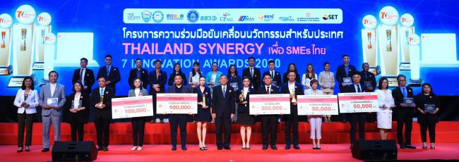 งาน “Thailand Synergy เพื่อ SMEs ไทย ประจำปี 2020” และกิจกรรมประกาศผลรางวัลสุดยอดนวัตกรรม “เซเว่น อินโนเวชั่น อวอร์ดส์”   ได้รับเกียรติจาก ดร.สุเมธ ตันติเวชกุล กรรมการและเลขาธิการมูลนิธิชัยพัฒนา และ ดร.ชัยวัฒน์ วิบูลย์สวัสดิ์ ประธานกรรมการตลาดหลักทรัพย์ฯ เป็นประธานในการมอบรางวัลทั้งสองสาขา อีกทั้งยังมีบูธแสดงผลงานนวัตกรรมกว่า 40 บูธ พร้อมให้ผู้ที่สนใจเข้ามาชม ชิม ช้อป ในราคาพิเศษโดยมีผู้ประกอบการและประชาชนที่สนใจเข้าร่วมจำนวนมาก เมื่อเร็ว ๆ นี้  ณ ภิรัช ฮอลล์ ชั้น 2 ศูนย์นิทรรศการและการประชุมไบเทค