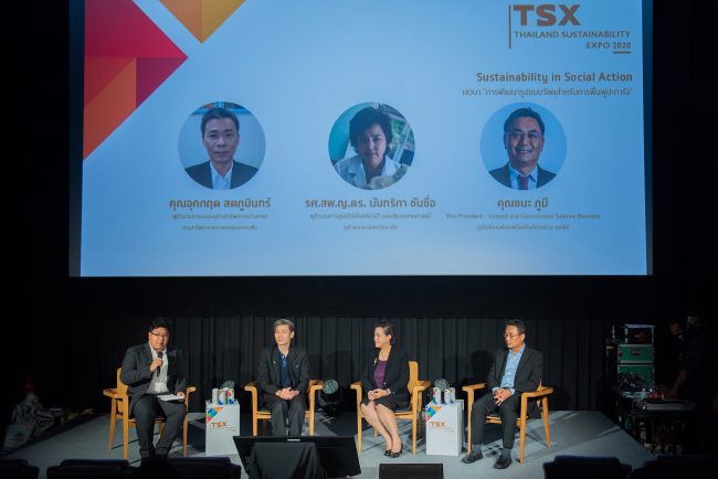 ในโอกาสที่มีการจัดงาน Thailand Sustainability Expo 2020 (TSX 2020) ซึ่งเป็นอีกหนึ่งเวทีสำคัญขององค์กรต้นแบบด้านความยั่งยืนของประเทศไทยที่มาร่วมกันขับเคลื่อนการพัฒนาอย่างยั่งยืน ผู้จัดงานจึงได้หยิบยกเรื่อง การพัฒนารูปแบบวัสดุเพื่อใช้ในการฟื้นฟูแนวปะการังด้วยเทคโนโลยี 3D Cement Printing มาเป็นหัวข้อหนึ่งในการเสวนา โดยมี นายอุกกฤต สตภูมินทร์ ผู้อำนวยการกองอนุรักษ์ทรัพยากรทางทะเล                         กรมทรัพยากรทางทะเลและชายฝั่ง กระทรวงทรัพยากรธรรมชาติและสิ่งแวดล้อม รศ.สพ.ญ.ดร.นันทริกา ชันซื่อ ผู้อำนวยการศูนย์วิจัยโรคสัตว์น้ำ คณะสัตวแพทยศาสตร์ จุฬาลงกรณ์มหาวิยาลัย และ นายชนะ ภูมี                          Vice President ธุรกิจ Cement and Construction Solution จากเอสซีจี ร่วมเสวนาแนวทางความร่วมมือในการพัฒนารูปแบบวัสดุเพื่อใช้ในการฟื้นฟูแนวปะการัง