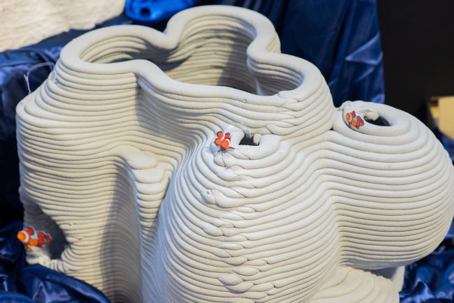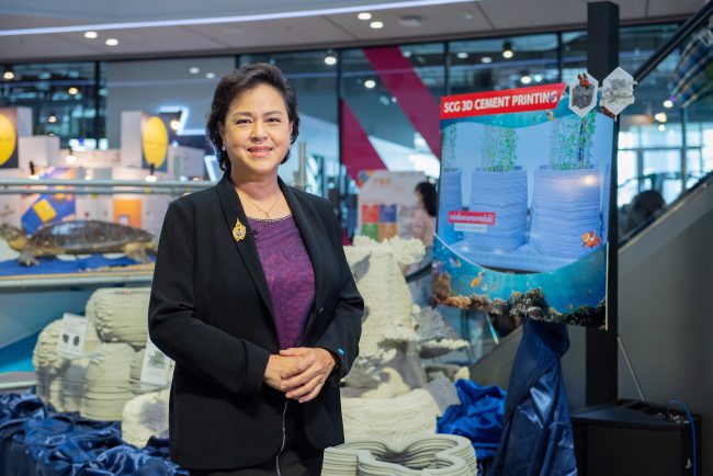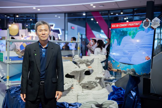 เอสซีจี โดยธุรกิจ Cement and Construction Solution ร่วมกับกรมทรัพยากรทางทะเลและชายฝั่ง (ทช.) กระทรวงทรัพยากรธรรมชาติและสิ่งแวดล้อม และคณะสัตวแพทยศาสตร์ จุฬาลงกรณ์มหาวิทยาลัย ได้ร่วมกันนำเทคโนโลยี 3D Cement Printing มาพัฒนากับวัสดุ Advanced Materials ขึ้นรูปการพิมพ์แบบ 3 มิติ เป็นวัสดุฐานลงเกาะตัวอ่อนปะการัง สร้างต้นแบบที่มีความกลมกลืนเสมือนจริงใกล้เคียงธรรมชาติ เป็นอีกหนึ่งแนวทางในการฟื้นฟูทรัพยากรและระบบนิเวศทางทะเล  ความร่วมมือนี้ครอบคลุมไปถึงการศึกษา วิจัย ติดตามผลตามแนวทางการฟื้นฟูระบบนิเวศแนวปะการังและทรัพยากรทางทะเลและชายฝั่ง