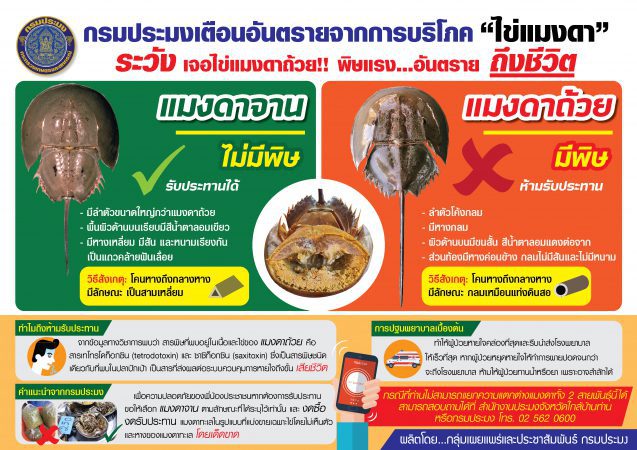 กรมประมงเตือนประชาชนระวัง กิน “แมงดาทะเล” ผิดชนิดอาจได้รับพิษร้ายถึงตายได้