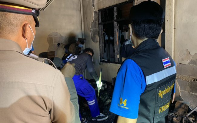 เวลา 19.30 น. วันที่ 5 พ.ย. ร.ต.อ.จำรัส ศรีหาตา รอง สว.(สอบสวน) สภ.เมืองนครพนม รับแจ้งเหตุเพลิงไหม้เรือนชาวบ้าน บ้านโพนสวรรค์ หมู่ 2 ต.คำเตย อ.เมือง จึงประสานรถดับเพลิง อบต.คำเตย รถดับเพลิง อบต.ขามเฒ่า รุดไปพร้อม พ.ต.อ.พลาเดช เพชรหน้าโง๊ะ รอง ผบก. พ.ต.อ.คำดี เฮียงบุญ รอง ผกก.สส. เจ้าหน้าที่ชุดสืบสวน พฐ.ภ.จว.นครพนม แพทย์เวร รพ.นครพนม กู้ภัยศรีสัตตนครพนม กู้ภัยลำโขงเฟรนด์ชิพ กู้ชีพ อบต.คำเตย รุดไปตรวจสอบ