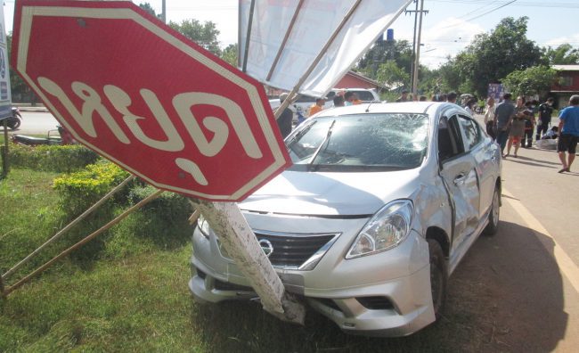 ที่เกิดเหตุถนน 4 เลน จุดกลับรถฝั่งขาเข้าตัวเมือง ปากทางเลี้ยวเข้า อบต.บ้านผึ้ง พบรถ จยย.ยี่ห้อฮอนด้าเวฟ สีดำคาดแดง ทะเบียน 1กฌ 4194 นครพนม ล้มคว่ำพังยับเยิน ข้างซากรถพบศพนายธนิสร ไกยะฝ่าย วัย 17 ปี ชาวบ้านนาโพธิ์ หมู่ 5 ต.บ้านผึ้ง อ.เมือง จ.นครพนม เสียชีวิตคาที่ข้างซากรถ ใกล้กันพบรถเก๋งยี่ห้อนิสสัน รุ่น อาเมร่า สีบรอนซ์เงิน ทะเบียน กค 6389 นครพนม สภาพหน้ารถกันชนหน้าพุ่งชนป้ายเครื่องหมายจราจรริมทาง และป้ายผู้สมัครหาเสียง ส.อบจ. กระจกหน้ามุมซ้ายแตกร้าว ประตูฝั่งซ้ายข้างที่นั่งคนขับมีรอยบุบยาว มี น.ส.ลัดดา สิงหา อายุ 45 ปี พนักงาน อบต.บ้านผึ้ง เป็นคนขับ ไม่ได้รับบาดเจ็บ ยืนรอให้การในที่เกิดเหตุด้วยอาการตื่นตระหนก