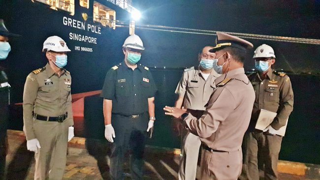 โดยให้จอดเรือทิ้งสมอ บริเวณหน้าเขื่อนกันคลื่นท่าเรือแหลมฉบัง และให้นายด่านควบคุมโรคติดต่อระหว่างประเทศท่าเรือแหลมฉบัง ดำเนินการตามมาตรการป้องกัน Covid- 19 ขึ้นตรวจคัดกรองลูกเรือ MV GREEN POLE และผู้ประสบภัยชาวเกาหลีใต้ทั้ง 6 คน ผลการตรวจปลอดภัยจากเชื้อไวรัสโควิด 19 และตรวจคัดกรองครั้งสุดท้ายก่อนส่งตัวขึ้นรถตู้ปรับอากาศ (ตามมาตรฐานการป้องกัน Covid- 19) นำส่งยังสนามบินสุวรรณภูมิ ในเวลา 01.00 น. ของคืนเดียวกัน โดยมีนายด่านควบคุมโรคฯกำกับดูแลตลอดเส้นทาง เพื่อนำขึ้นเครื่องบินกลับประเทศเกาหลีใต้ ต่อไป ซึ่งการดำเนินการส่งตัวผู้ประสบภัยชาวเกาหลีใต้ทั้ง 6 คน เป็นไปตามวิธีการและมาตรการป้องกัน Covid- 19 ของกระทรวงสาธารณะสุขอย่างเคร่งครัด