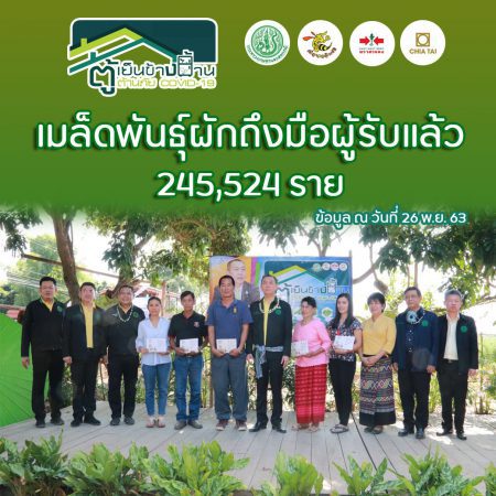ขณะนี้สามารถจัดส่งเมล็ดพันธุ์ผักให้กับผู้ลงทะเบียนแล้วจำนวน 245,524 ราย เหลือ 54,476 ราย คิดเป็น 81.84% โดยเมล็ดพันธุ์ ประกอบด้วย ผักคะน้า ผักบุ้ง กวางตุ้ง แตงกวา พริกขี้หนู กระเพรา เป็นต้น โดยกรมส่งเสริมการเกษตรได้ส่งมอบเมล็ดพันธุ์ตามโครงการดังกล่าวผ่านสำนักงานเกษตรจังหวัด สำนักงานเกษตรอำเภอ และส่งมอบแก่ประชาชนโดยตรง และคาดว่าจะจัดส่งถึงประชาชนที่ลงทะเบียนไว้ครบภายในเดือนธันวาคม 2563