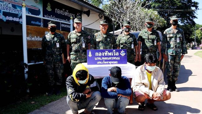 วันที่ 1 ธันวาคม 2563 เวลา 11.00 น. ณ กองบังคับการหน่วยเรือรักษาความสงบเรียบร้อยตามลำแม่น้ำโขง เขตนครพนม (บก.นรข.เขตฯ) อ.ธาตุพนม จ.นครพนม น.อ.สุรศักดิ์ สุวรรณเกษา ผบ.นรข.เขตนครพนม แถลงข่าวการจับกุมแรงงานต่างด้าวชาวลาว 2 คน และผู้นำพาเป็นคนไทยอีก 1 คน รวมเป็น 3 คน พร้อมของกลางรถกระบะยี่ห้ออีซูซุ D-MAX แค๊บ รุ่น HI-LANDER สีดำ ทะเบียน ฒต 1867 กรุงเทพมหานคร โดยเมื่อวันที่ 30 พฤศจิกายน ได้รับแจ้งจากสายข่าวว่าจะมีการลักลอบเข้าเมืองโดยผิดกฎหมาย บริเวณบ้านนาคำ หมู่ 13 ต.ธาตุพนม อ.ธาตุพนม จึงสั่งการให้ น.ท.พิเชษฐ์ เมืองโคตร หน.สถานีเรือธาตุพนม จัดชุดลาดตระเวนเข้าตรวจสอบ บริเวณริมฝั่งแม่น้ำโขงตามที่ได้รับแจ้ง กระทั่งเวลา 19.30 น. พบเรือหาปลาติดเครื่องยนต์แล่นมาจากฝั่งประเทศเพื่อนบ้าน จอดเทียบท่าแล้วมีชาย 2 คน เดินขึ้นมาอยู่บนชายฝั่ง จากนั้นเรือหาปลาก็เบนหัวกลับไปฝั่งตรงข้ามอย่างรวดเร็ว ชายทั้งสองเดินขึ้นมายืนอยู่ริมถนน โดยมีกระเป๋าเสื้อผ้าสะพายอยู่ด้านหลัง