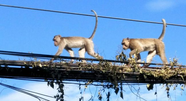 ชาวบ้านพบลิงแสม 2 ตัวไต่สายไฟกลัวถูกช็อต โทรแจ้งกู้ภัยฯ ก่อนบุกเข้าโรงเรียนเด็กเล็กครูสั่งปิดห้องด่วน