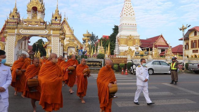 ประชาชน พร้อมใจทำบุญตักบาตรถวายเป็นพระราชกุศลแด่ในหลวงรัชกาลที่ 9 เนื่องในโอกาสวันคล้ายวันพระบรมราชสมภพ วันชาติ และวันพ่อแห่งชาติ 5 ธันวาคม 2563
