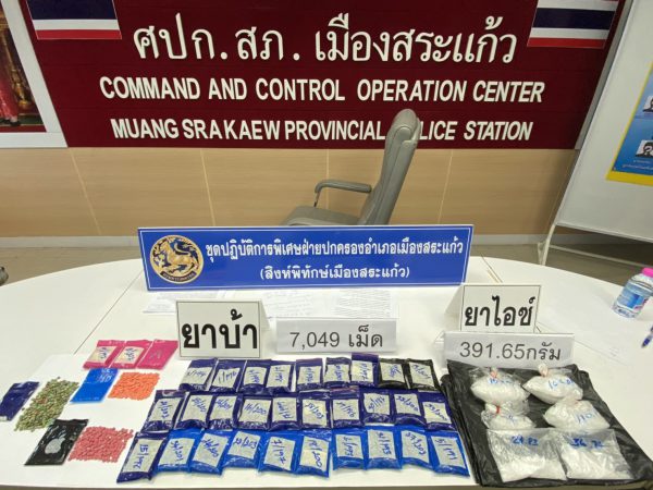 เมื่อเวลา 14.00 น.วันนี้ ที่ สภ.เมืองสระแก้ว นายเกียรติศักดิ์ จันทรา ผู้ว่าราชการจังหวัดสระแก้ว พร้อมด้วย พ.ต.อ เสกสรร วัฒนพงษ์. รอง ผบก.ภ.จว.สระแก้ว ร่วมแถลงข่าวจับกุมยาเสพติดรายใหญ่หลังจากได้รับร้องเรียนทางศูนย์ดำรงธรรมอำเภอเมืองสระแก้ว โดยนายราเยส ราย รักษาราชการแทนนายอำเภอเมืองสระแก้ว จ.สระแก้ว นำกำลังชุดปฏิบัติการพิเศษฝ่ายปกครอง ชุดสิงห์พิทักษ์เมืองสระแก้ว สืบสวนกระทั่งสามารถจับกุมนายชาติชาย เค้ามูล “โบ้ท เนินสะอาด” อายุ 25 ปี อยู่บ้านเลขที่ 24 หมู่ 5 ต.สระแก้ว อ.เมือง จ.สระแก้ว พร้อมของกลางยาบ้า จำนวน 7,049 เม็ด ยาไอซ์ จำนวน 391.65 กรัม โดยผู้ต้องหาให้การรับสารภาพว่ายาเสพติดทั้งหมดเป็นของตนเองลักลอบค้าขายในพื้นที่มานานหลายปีจนมีฐานะ และยาบ้าทั้งหมดไปรับยามาจากผู้ค้ารายใหญ่ในพื้นที่ จ.ปทุมธานี ซึ่งจะทำการขยายผลต่อไป