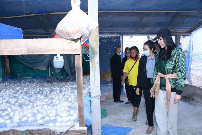 “รมช.มนัญญา” เยี่ยมเกษตรกรกลุ่มปลูกหม่อนเลี้ยงไหม ดันต่อยอดผ้าทอฝ้ายแกมไหม เพิ่มมูลค่าผลิตภัณฑ์