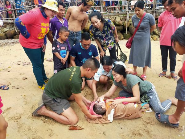 ซึ่งเป็นภาพวินาทีสุดระทึกของ ด.ช. ไค้ อายุ 5 ขวบ ที่ จ่าโท ปริวัตร เหลวกูล จนท.พยาบาลเวรประจำวัน ตอนพยาบาล หน่วยเฉพาะกิจนาวิกโยธิน 182 (ฉก.นย.182) บ้านหาดเล็ก อ.คลองใหญ่ จ.ตราด ขณะปฏิบัติหน้าที่ตรวจรักษากำลังพลและประชาชนในพื้นที่อยู่นั้น ได้สังเกตุเห็นบริเวณชายหาดบ้านหาดเล็ก มีเด็กๆ ในพื้นที่ทั้งสัญชาติไทยและกัมพูชา เล่นอยู่บริเวณชายหาดและในทะเล ซึ่งเมื่อมองไปในทะเล พบเด็กคนหนึ่งนอนหงายไม่เคลื่อนไหวอยู่ในทะเล จึงรีบวิ่งลงน้ำเพื่อช่วยเหลือนำตัวเด็กขึ้นมาบนฝั่ง และมี จ่าเอก ฐิติกร เพียสา ได้รีบเข้าช่วยเหลือและรายงานให้ผู้บังคับบัญชาทราบ เมื่อนำเด็กขึ้นบนฝั่งพบว่าเด็กหมดสติ ไม่หายใจ จึงทำการปั๊มหัวใจ (ทำ CPR) ประมาณ 1 นาที จนเด็กได้สติกลับคืนมา จึงได้นำผ้าห่มคลุมตัว เพื่อให้เกิดความอบอุ่นกับร่างกาย โดยนางลิสา แม่ของ ด.ช.ไค้ สัญชาติกัมพูชา และญาติๆ ของเด็กได้ปลอบขวัญจนเริ่มมีอาการดีขึ้น และรีบนำส่ง รพ.จังหวัดตราด เพื่อตรวจเช็คร่างกายต่อไป