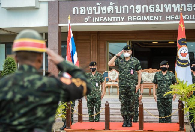 วันนี้ 13 ธันวาคม 2563 ที่หน้ากองบังคับการ กรมทหารราบที่ 5 ภายใน มทบ.42 ค่ายเสนาณรงค์ อ.หาดใหญ่ จ.สงขลา พ.อ.อายุพันธ์ กรรณสูต ผู้บังคับการกรมทหารราบที่ 5 ได้มอบหมายให้ พ.อ. เรวัตร เซ่งเข็ม เสนาธิการ กรมทหารราบที่ 5 เป็นประธานในพิธีพบปะเยี่ยมญาติทหารใหม่ ผลัดที่ 2 ประจำปี 2563 โดยมีทั้งผู้บังคับบัญชาและพ่อแม่ผู้ปกครองของเหล่าทหารใหม่จากหลายจังหวัดเข้าร่วมจำนวนมาก