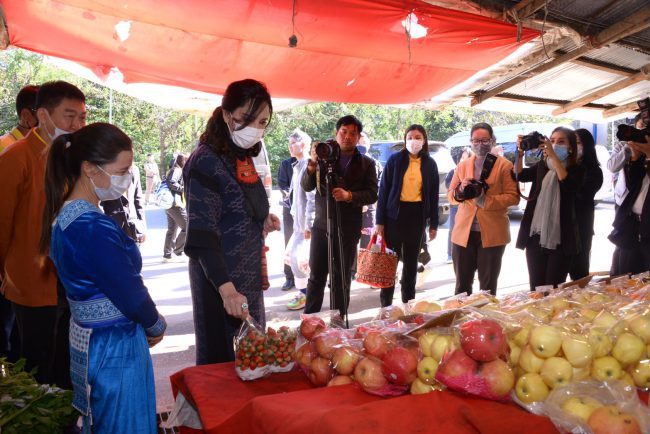 จากนั้น รัฐมนตรีช่วยว่าการกระทรวงเกษตรและสหกรณ์ ได้เยี่ยมชมตลาดเกษตรกร ตลาดแม่บ้านและเยาวชนบ้านขุนกลาง ซึ่งกรมส่งเสริมสหกรณ์ ได้ส่งเสริมกลุ่มสตรีซึ่งเป็นแม่บ้านและเยาวชน ของบ้านขุนกลางให้มีอาชีพและเพิ่มรายได้โดยการตั้งตลาดขายสินค้าชุมชน เพื่อจำหน่ายของที่ระลึกและผลิตภัณฑ์การเกษตรตามฤดูกาล ปัจจุบันมีสมาชิก 80 คน มีทุนหมุนเวียนมากกว่า 5 แสนบาท สมาชิกกลุ่มสตรีมีรายได้เฉลี่ย 30,000 – 100,000 บาท/ปี
