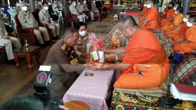 โดยเวลาประมาณ 9.30 น. องคมนตรี พร้อมด้วยคณะอนุกรรมการฯ และผู้แทนหน่วยงานที่เกี่ยวข้อง ได้เดินทางไปยังวัดอุดมพลาราม หรือวัดไร่บน ตำบลหาดขาม อำเภอกุยบุรี จังหวัดประจวบคีรีขันธ์ โอกาสนี้ได้ถวายสังฆทานแด่พระสงฆ์และสามเณร จำนวน 25 รูป และรับฟังประวัติความเป็นมาของวัด พร้อมกับชมการดำเนินงานของหน่วยงานต่าง ๆ ที่ได้มาช่วยเหลือและแก้ไขปัญหาความเดือดร้อนที่เกิดขึ้นบริเวณวัดอุดมพลาราม อันได้แก่ การป้องกันการกัดเซาะตลิ่งแบบเรี่ยงหิน โดยกรมโยธาธิการและผังเมือง รวมถึงการขยายผลโครงการอ่างเก็บน้ำยางชุมอันเนื่องมาจากพระราชดำริในการส่งน้ำ เพื่อช่วยเหลือราษฎร พร้อมกันนี้ องคมนตรี ได้ปลูกต้นไทร เพื่อสร้างร่มเงาและร่มเย็นให้กับประชาชนต่อไปด้วย
