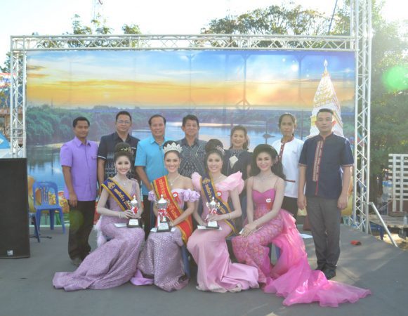 นายอำเภอศรีสงคราม ประธานในการประกวดธิดาปลาจำแลงในงานมหกรรมเทศกาลปลาลุ่มน้ำสงครามประจําปี 2563