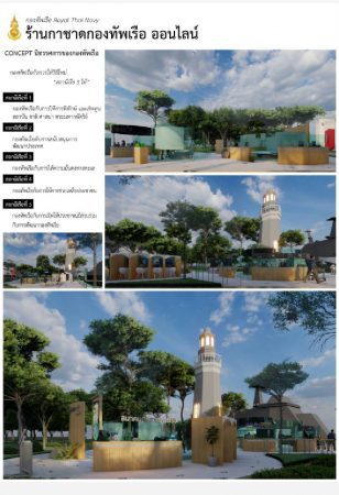 ด้าน พลเรือเอก สิทธิพร มาศเกษม รองผู้บัญชาการทหารเรือในฐานะ ประธานกรรมการร้านกองทัพเรือ เปิดเผยว่า ในปีนี้กองทัพเรือ ได้ออกแบบร้านกาชาดออนไลน์ภายใต้ Concept การให้วิถีใหม่ ประกอบด้วยร้านค้าสมาคมภริยาทหารเรือ ร้านค้าของกองทัพเรือและนิทรรศการกองทัพเรือ โดยนิทรรศการในปีนี้ ได้จัดทำเป็นสถานีเรือแบ่งออกเป็น 5 สถานีเรือหรือเรียกว่า “สถานี 5 ให้” ประกอบด้วย