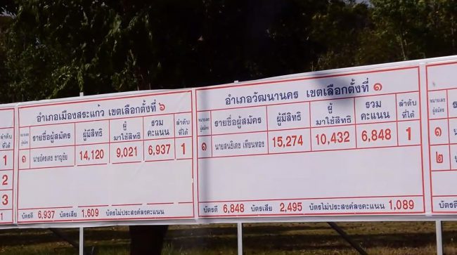 ขณะที่การเลือกตั้งในครั้งนี้ จำนวนผู้มีสิทธิ์ทั้งจังหวัด 425,109 คน ออกไปใช้สิทธิ์เพียง 273,308 คน คิดเป็นร้อยละ 64.29 บัตรดี 250,451 ใบ คิดเป็นร้อยละ 91.64 ส่วนบัตรเสีย 11,765 ใบ คิดเป็นร้อยละ 4 เช่นเดียวกับบัตรผู้ไม่ประสงค์ลงคะแนน 11,052 ใบ คิดเป็นร้อยละ 4 / ส่วนปัญหาในการเลือกตั้ง ครั้งนี้ เจ้าหน้าที่ของ กกต.สระแก้วเอง ยอมรับว่า ขณะนี้กำลังเร่งรวบรวมผลคะแนนอย่างไม่เป็นทางการ แต่ยังติดปัญหาในเรื่องของ “บัตรเขย่ง” ที่ยังคงทำให้ยอดผู้ลงทะเบียนใช้สิทธิ์ในหน่วยเลือกตั้งนั้นๆ ตัวเลขไม่ตรงกับต้นขั้วของบัตรเลือกตั้ง โดยสาเหตุหลักๆ ก็คือ ผู้มีสิทธิ์บางคนไม่สามารถเลือก สจ.ได้ เพราะอาศัยอยู่ในเขตพื้นที่นั้นไม่ครบ 1 ปี จึงทำให้มีสิทธิ์เลือกตั้งได้แต่เฉพาะ สจ.เท่านั้น หรือ อาจเกิดจากความผิดพลาดของเจ้าหน้าที่ประจำหน่วยที่แจกบัตรเกิน หรืออาจจะรวบรวมตัวเลขผิด คาดว่า เจ้าหน้าที่จะสามารถยืนยันผลการเลือกตั้งอย่างเป็นทางการได้ไม่เกินในช่วงบ่ายวันนี้
