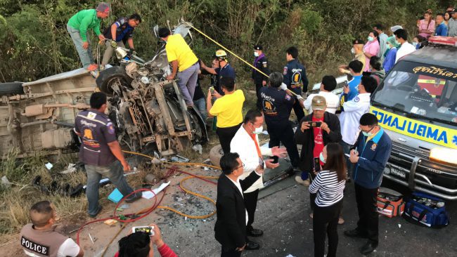 เมื่อเวลา 17.30น.วันที่22. ธค.63 เกิดอุบัติเหตุรถหกล้อส่งขนมปังเสียหลักชนรถตู้นักเรียนพลิกคว่ำตกถนน ที่บริเวณหน้าวัดหนองไผ่ล้อม ตำบลกุดตุ้มอำเภอเมืองจังหวัดชัยภูมิบนถนนสายชัยภูมิ-บัวใหญ่ ในที่เกิดเหตุพบ รถหกล้อ สีขาว อีซูซุ ทะเบียน 2ฒน 608 กทม จอดขวาง อยู่กลางถนน ใกล้กันพบรถตู้ โตโยต้าสีบรอนซ์เงิน ทะเบียน นข 3198 ชัยภูมิ พลิกคว่ำ ตกอยู่ ข้างถนน ภายใน มีนักเรียน จำนวนหลายราย ร้องโอดโอย ขอความช่วยเหลืออยู่ในรถพลเมืองดีเร่ง ประสานกู้ภัยแล้วเจ้าหน้าที่ตำรวจ เข้าช่วยเหลือที่เกิดเหตุเป็นการด่วน เจ้าหน้าที่ กู้ภัยสว่างคุณธรรมจังหวัดชัยภูมิต้องนำเครื่องตัดทาง มาช่วยเหลือนำผู้บาดเจ็บที่ติดไว้ในรถออกนำส่งโรงพยาบาล อย่างเร่งด่วนเบื้องต้นยังไม่พบผู้เสียชีวิต