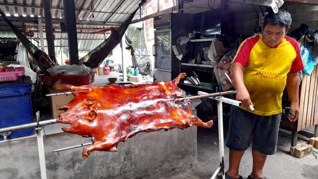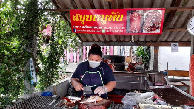 ผู้ประกอบการ ‘หมูหัน’ เจ้าดังศรีราชายิ้มรับออเดอร์หมูหันจากลูกค้า