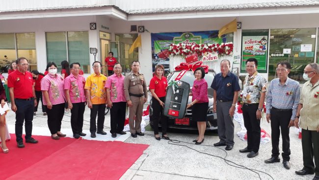 เวลา 17.00 น.วันที่ 5 ก.พ.64 ที่ บริเวณลานจอดรถ ธ.ก.ส.สาขาหนองใหญ่ อำเภอหนองใหญ่ จังหวัดชลบุรี นางอาภรณ์ ใหม่มงคล นายอำเภอหนองใหญ่ เป็นประธาน การจับรางวัลเงินฝากออมทรัพย์ทวีโชค โดยมีนายพาวุฒิ ตาลบำรุง ผู้อำนวยการสำนักงาน ธ.ก.ส.จังหวัดชลบุรี พร้อมแขกผู้มีเกียรติมาร่วมเป็นสักขีพยานหลายหน่วยงานด้วยกัน โดยปีนี้ทาง ธกส.ได้จัดงานแบบถ่ายทอดสดผ่านระบบ Online Facebook Live เพื่อลดการชุมนุมและลดการแพร่ระบาดของไวรัสโควิด 19