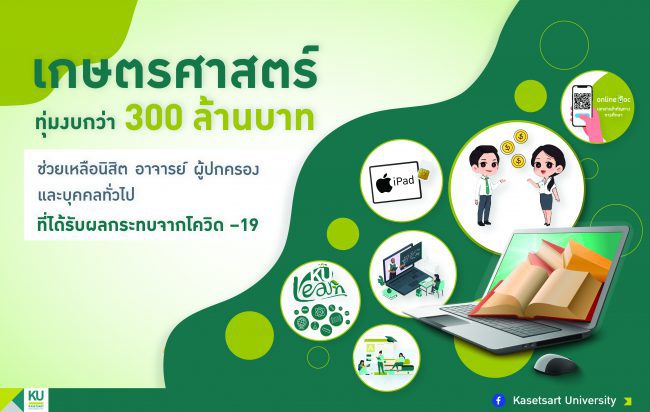 ม.เกษตรศาสตร์ ทุ่มงบกว่า 300 ล้านบาท ให้ความช่วยเหลือนิสิตอย่างต่อเนื่อง กำชับทุกส่วนงานให้บริการสนับสนุนการเรียน-สอน-สอบออนไลน์อย่างเต็มที่